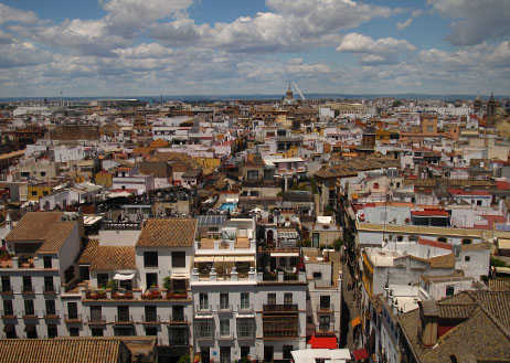 View of Seville, from the Tower of "Catedral de Sevilla," Seville, Spain.